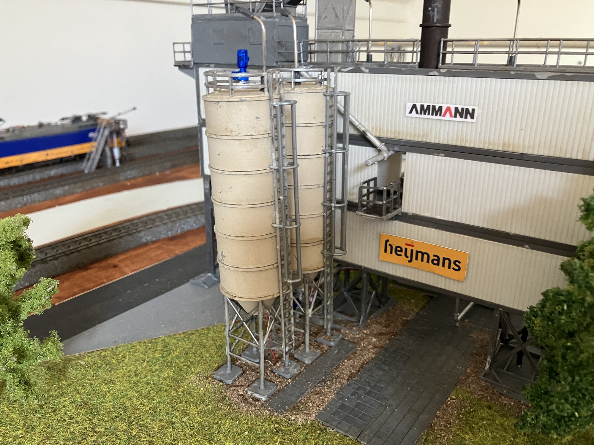 Sinds de laatste update heb ik te maken gekregen met ziekte en ander ongemak waardoor het bouwen aan de modeltreinbaan een andere prioriteit heeft gekregen. Toch is er wel wat bijgebouwd en veranderd. Allereerst is er veel veranderd in de lay-out. Niet het baanplan maar wel in de scenery. Zo is de betonfabriek van de “oude” baan uitgebreid met 8 cement silo’s van Faller. Leuk vind ik de opschriften op de silo’s: “Cement verbindt alles”. Het bouwen van de silo’s is een secuur werkje. O.a. met het beschilderen (met of zonder airbrush) kan je beter wachten tot alles is gelijmd. Anders zitten de gaatjes van de draagframes vol met verf en zijn ze moeilijk te lijmen. Alle silo’s zijn natuurlijk voorzien van verlichting (die nog wel aangesloten moet worden)