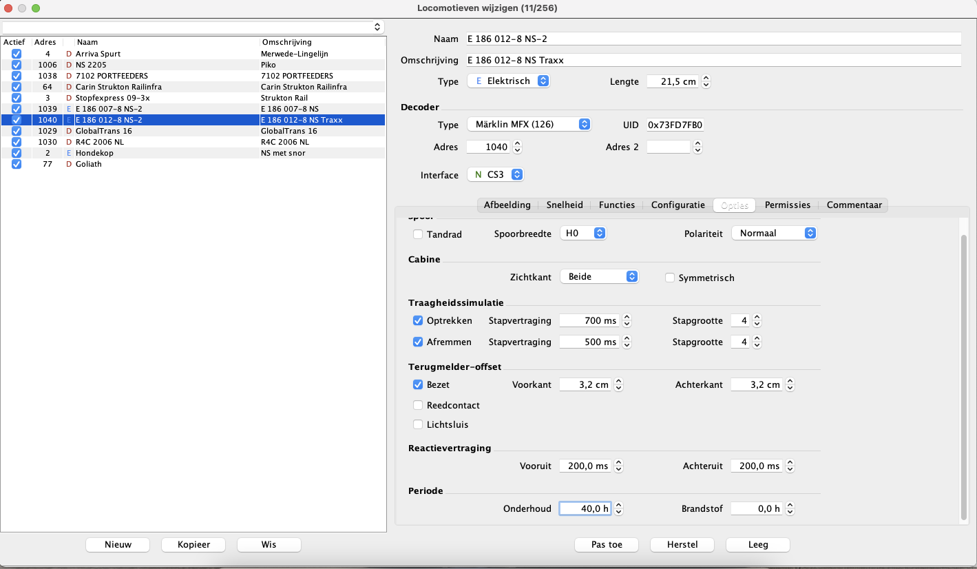Het invoeren van alle data over de loks en wagons is best een tijdrovend klusje. Het eindresultaat ziet er dan als volgt uit: