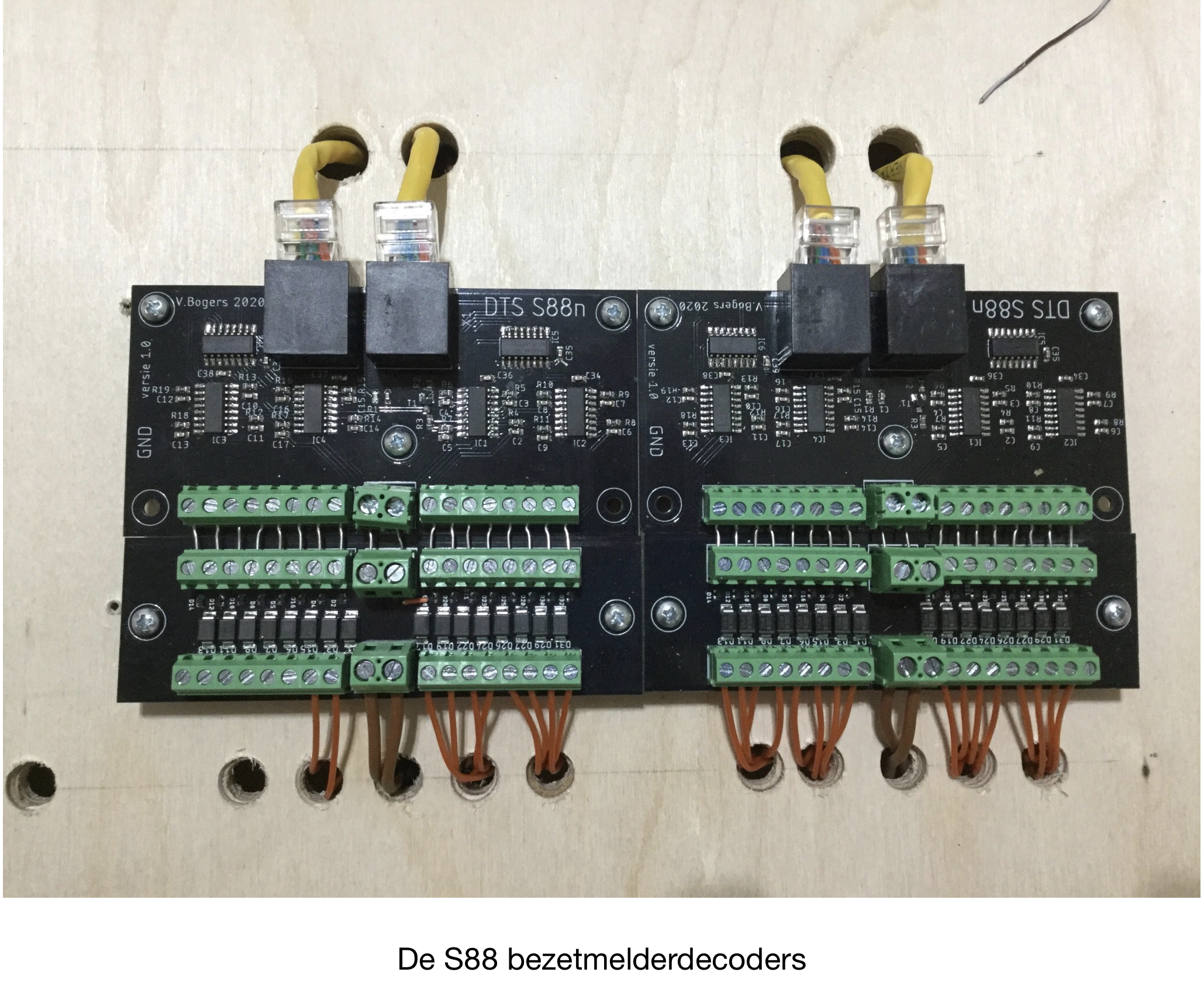 Het wachten is nu op de S88 links voor de bezetmelders. De seindecoders had Martin vandaag al bij zich. 27 april komen de mannen van DAAR de bovenbouw plaatsen en de volgende afspraak met Martin is op 10 mei.