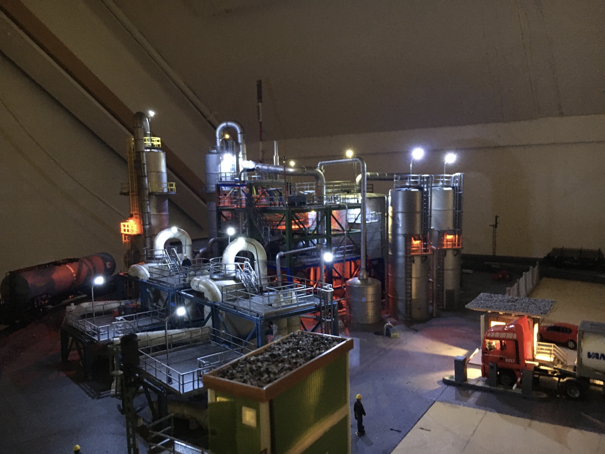 Met de uitbreidingen lijkt het nu wel een realistische fabriek en met de verlichting aan is het ook in het donker leuk om naar te kijken.