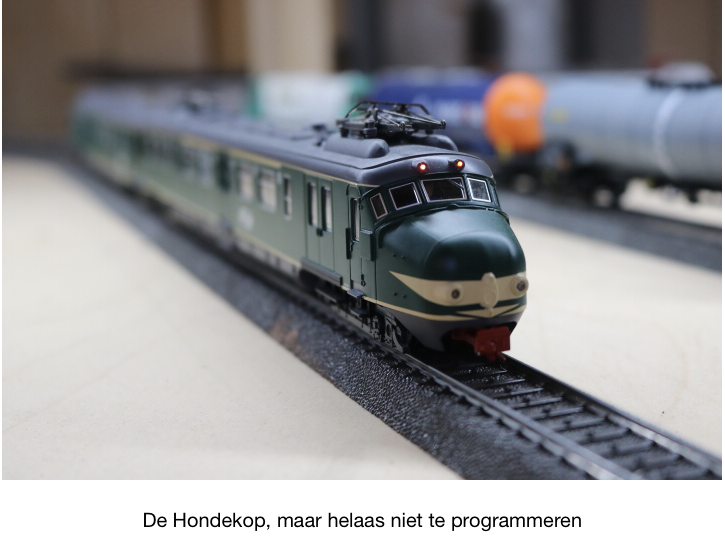De Hondekop (met snor) van Piko heeft inmiddels interieurverlichting. Ik kwam daar zelf niet uit, maar Arnaud van Domburg Train Support wel! De Hondekop gaf helaas wat kuren bij de snelheidsmeting in iTrain en stopt ook niet op de plaatsen waar ik dat wil. Zoeken we later uit.