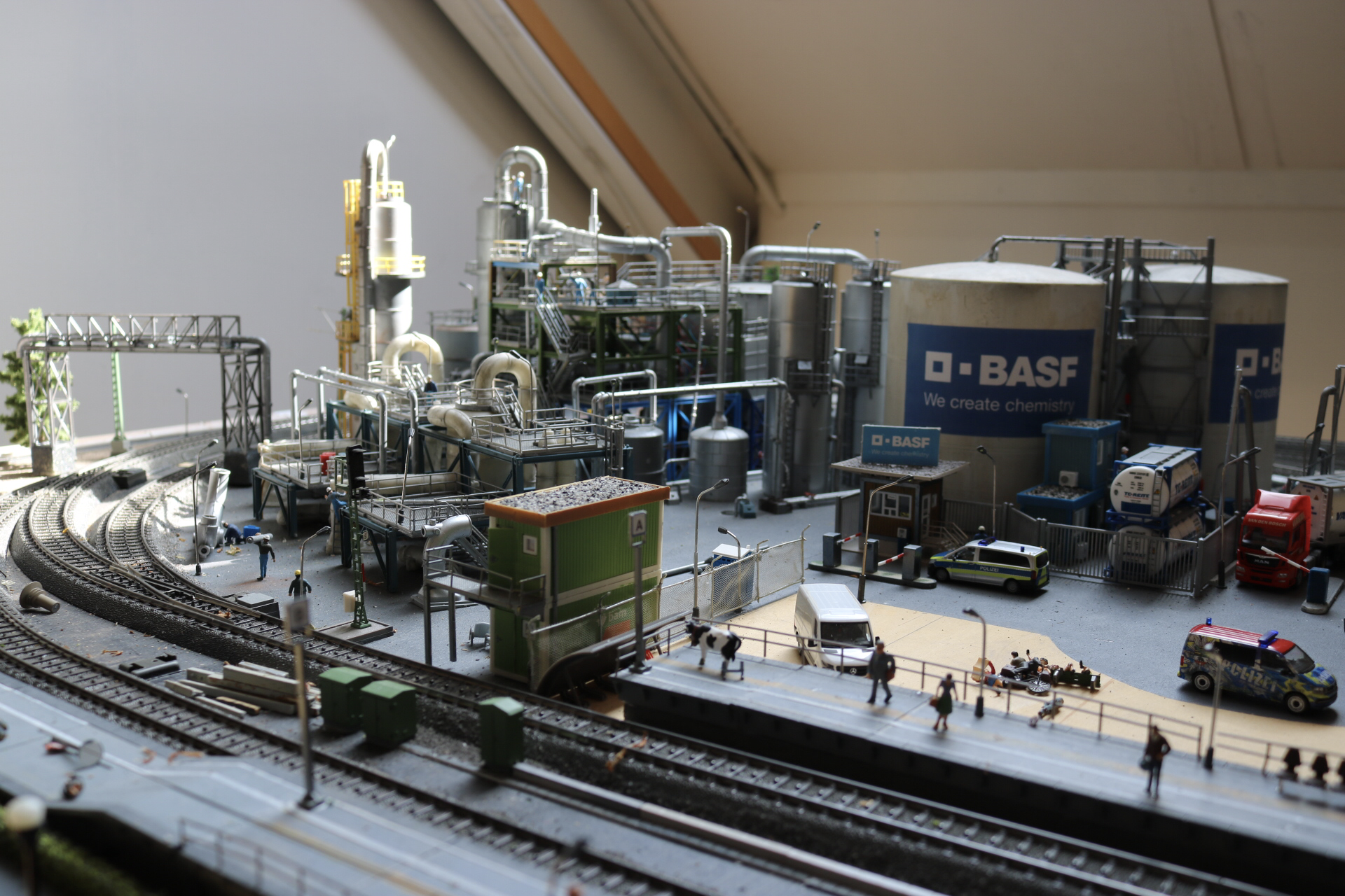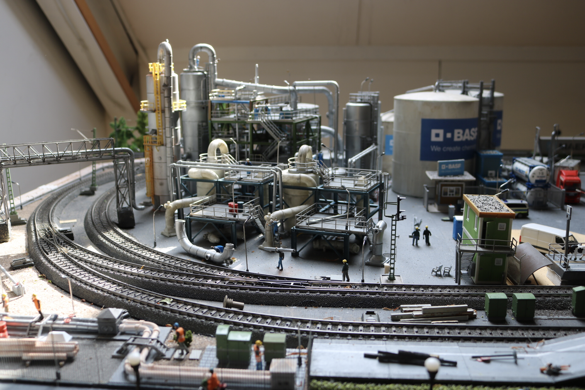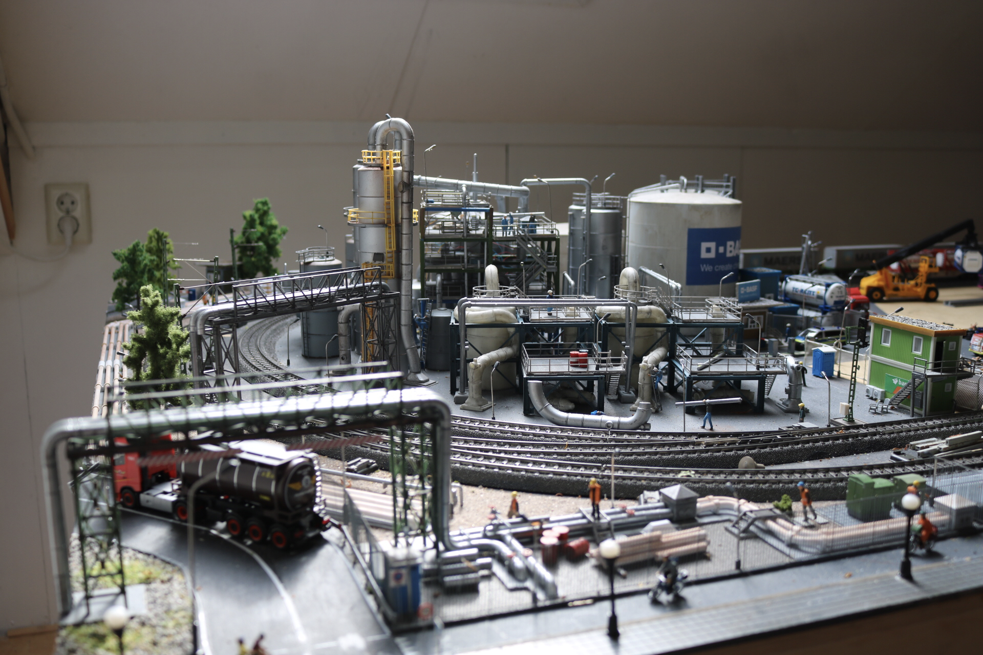 In de scenery is best wel wat veranderd en toegevoegd. De chemische fabriek van BASF is nu vrijwel af op nog wat details na zoals het weatheren van de ketelcontainers op het terrein. De terreinverlichting werkt en er is een bouwkeet geplaatst met twee verdiepingen. Het hekwerk en toegangspoort zijn klaar